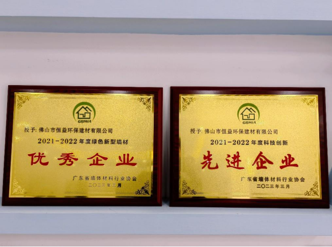 近日,經(jīng)廣東省墻體材料行業(yè)協(xié)會(huì)評(píng)選,佛山市恒益環(huán)保建材有限公司榮獲“2021-2022年度綠色新型墻材優(yōu)秀企業(yè)”“2021-2022年度科技創(chuàng)新先進(jìn)企業(yè)”榮譽(yù)稱(chēng)號(hào)。張智峰同志獲“2021-2022年度墻體材料行業(yè)先進(jìn)工作者”稱(chēng)號(hào)。?